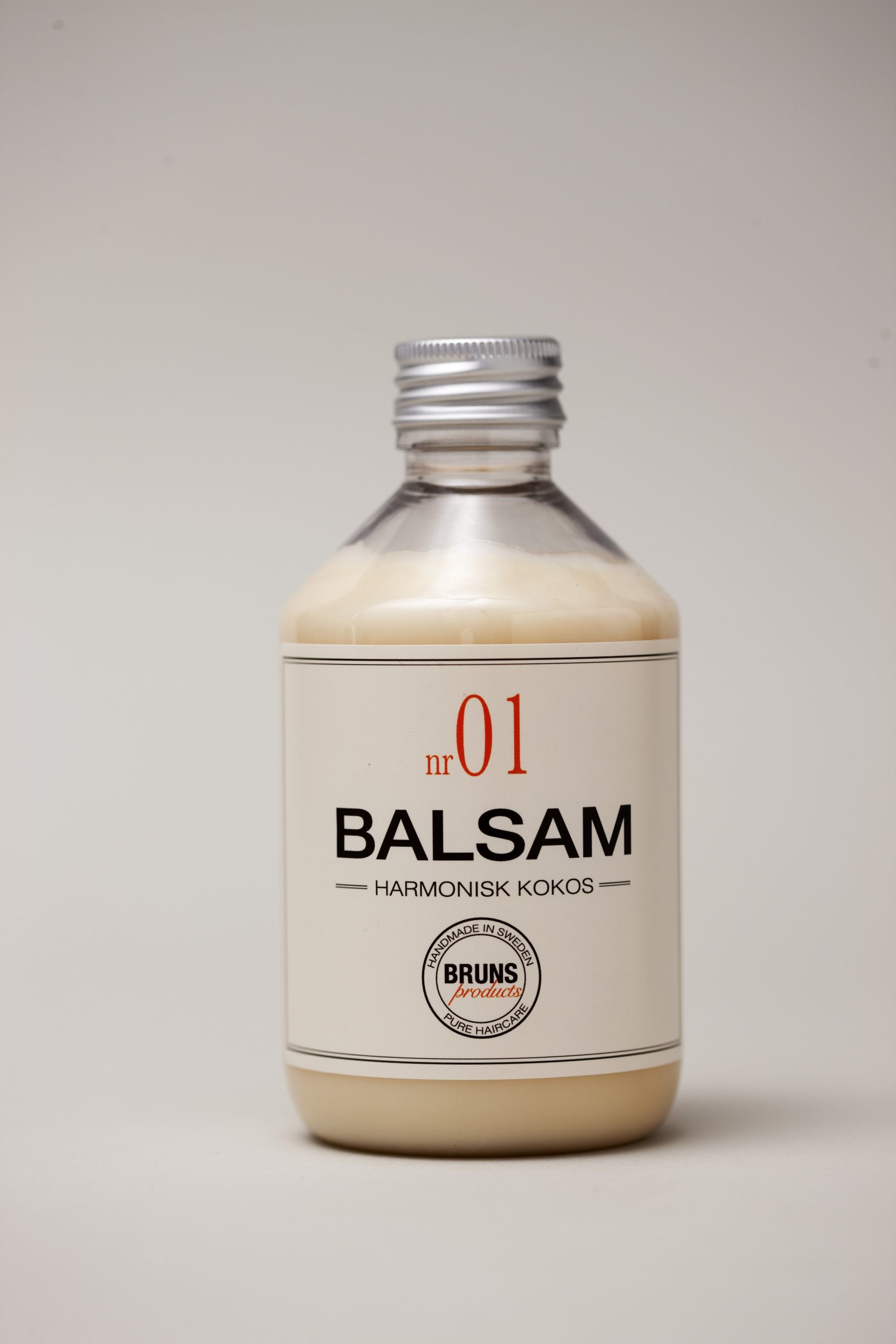 Bruns Balsam Nr 01 Harmonisk kokos. Balsamet för dig som använder Schampo Nr 01. Detta balsam har samma härliga doft av varm mjuk kardemumma, exotisk kokos och en nypa apelsin. Balsamet ger ett mjukt glansigt hår. Perfekt för dig som har färgat hår eller kör balsammetoden. Innehåller ekologisk avokadoolja som vårdar och återfuktar, samt E-vitamin och Aloe Vera.
