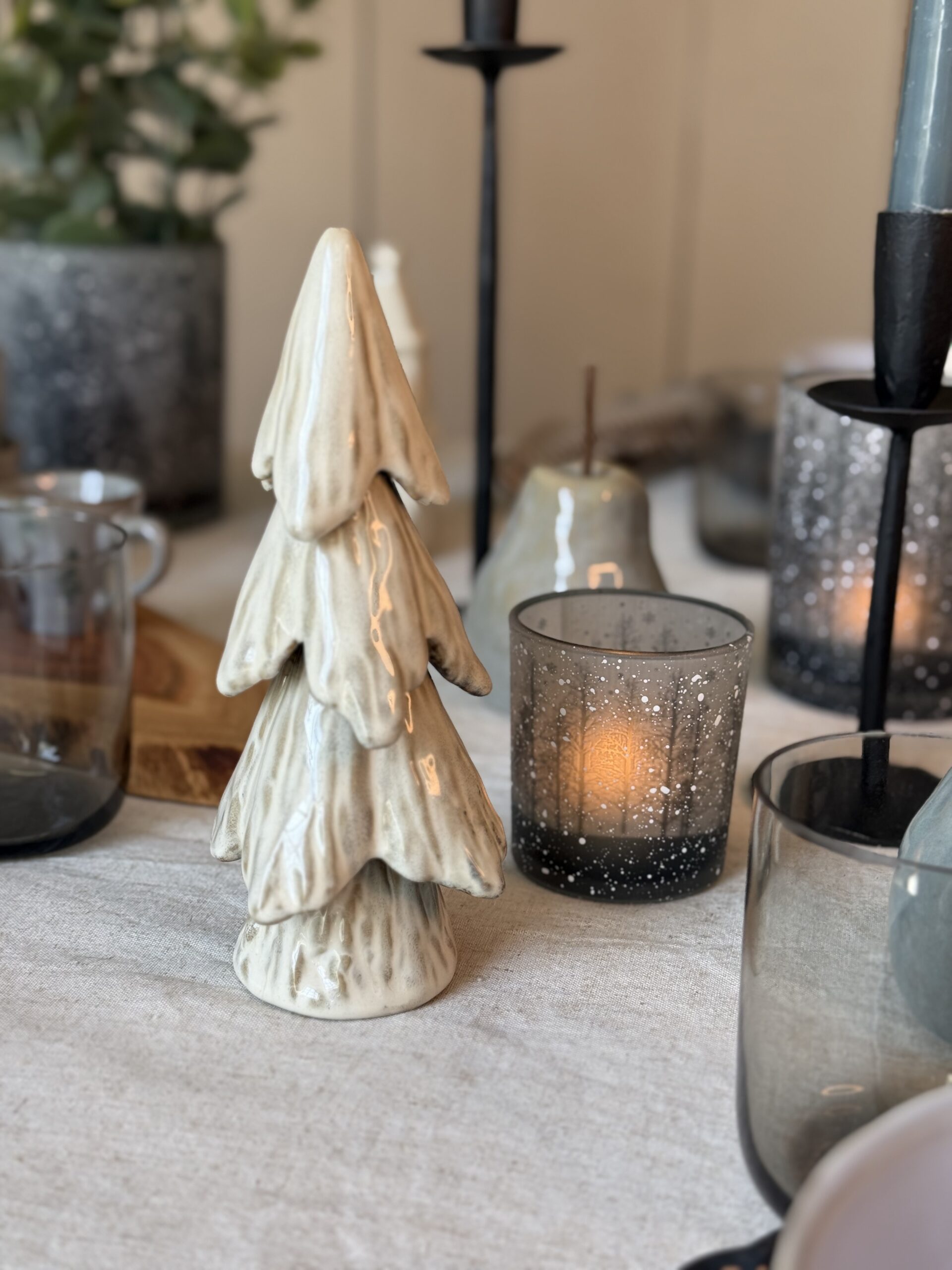 Dekoration Gran Snö liten. Vacker gran i keramik som har formen av att den är täckt av tungt hängande snö. Glaserad med reaktiv glasyr. Finns även i större variant.