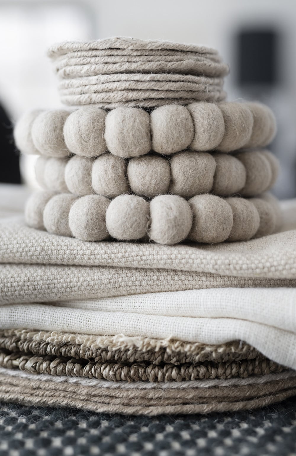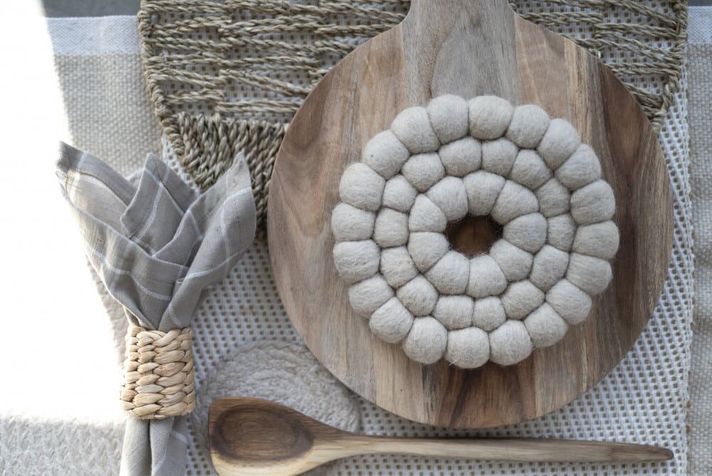 Grytunderlägg Rulle lin. Snyggt linfärgat grytunderlägg i 100% ull.