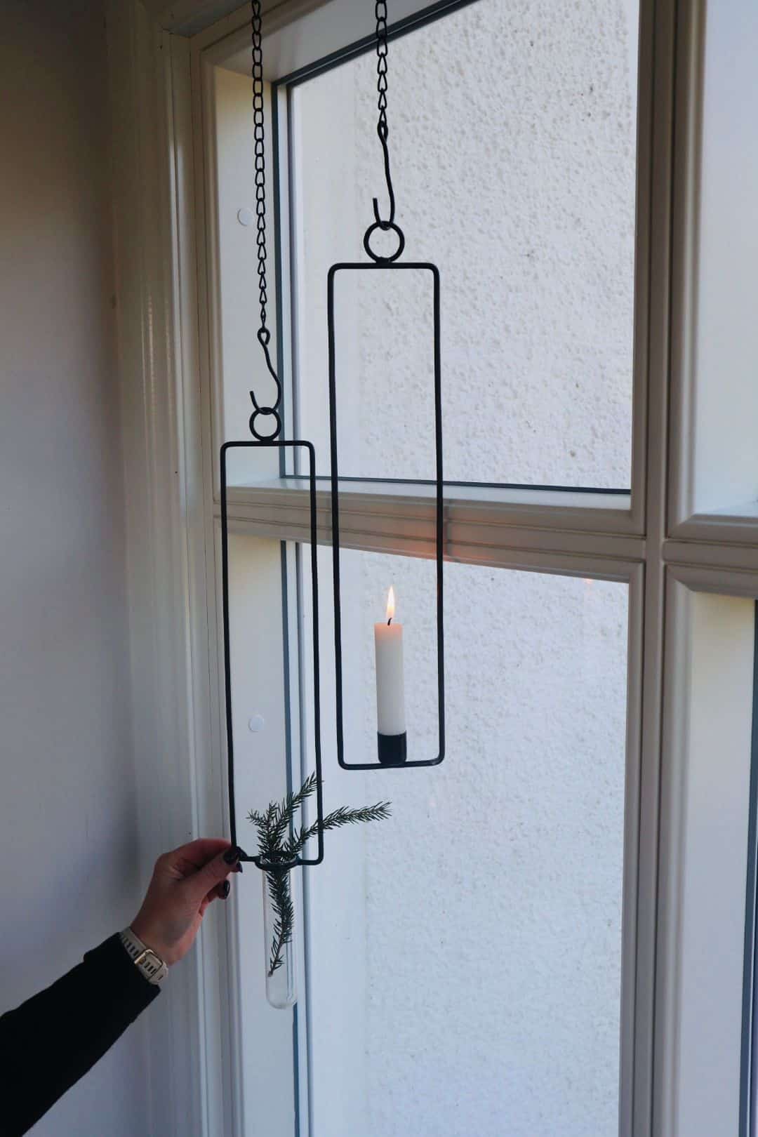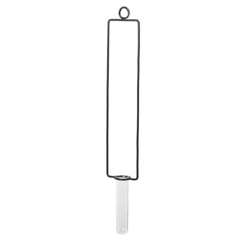 Hängande Vas Ester. Hållare för smal cylindervas för upphängning. Fin att hänga upp i fönster, tak eller utomhus. Finns även som Ljushållare hängande Astrid som är fin att komplettera med. Under Förvaring hittar du olika krokar att använda för upphängning. (krok medföljer ej)