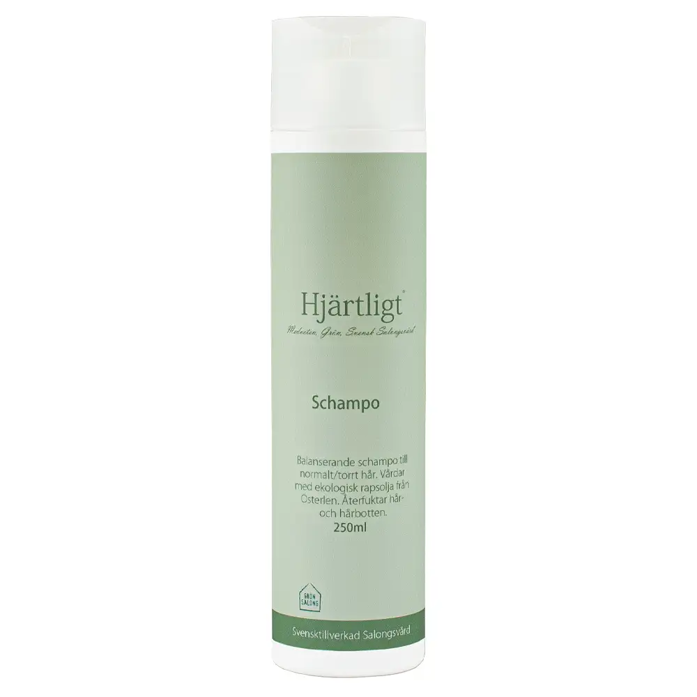 Hjärtligt Shampoo för normalt till torrt hår. Rengör skonsamt och balanserar hårbotten. Innehåller ekologisk rapsolja från Österlen.