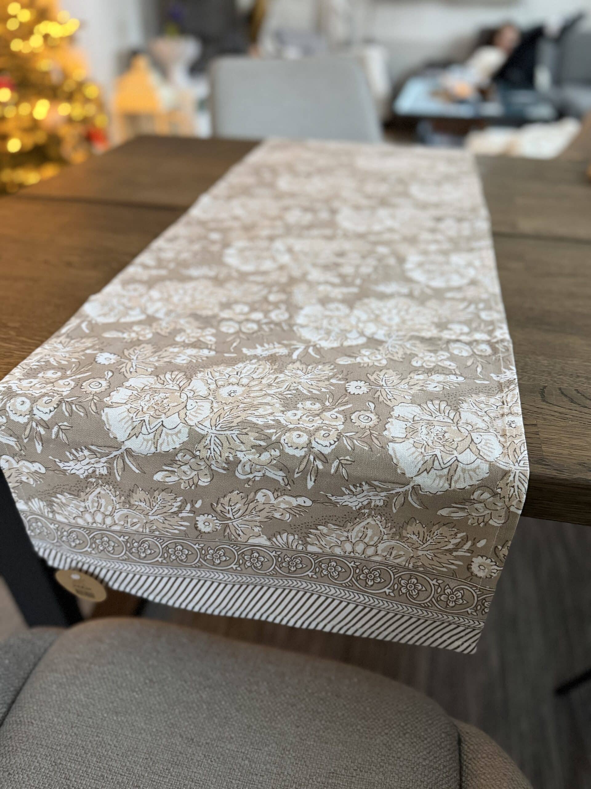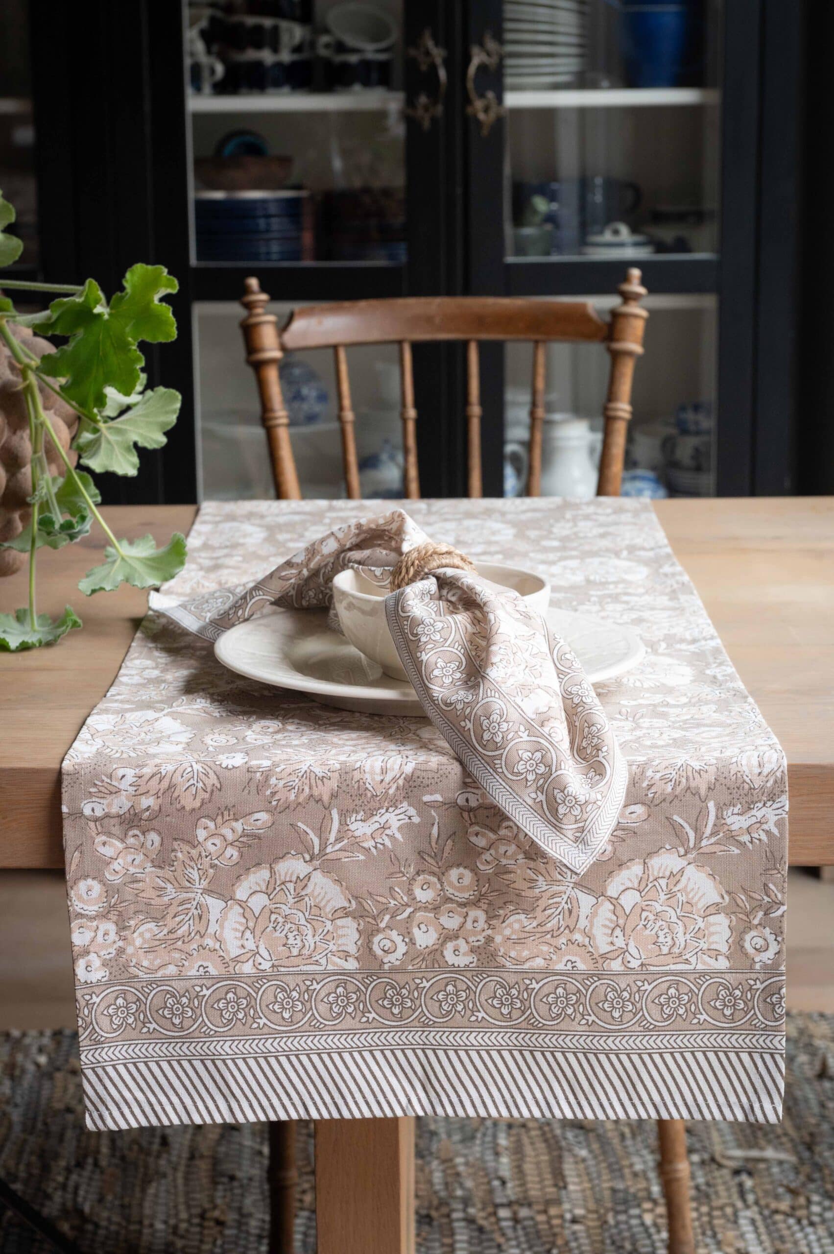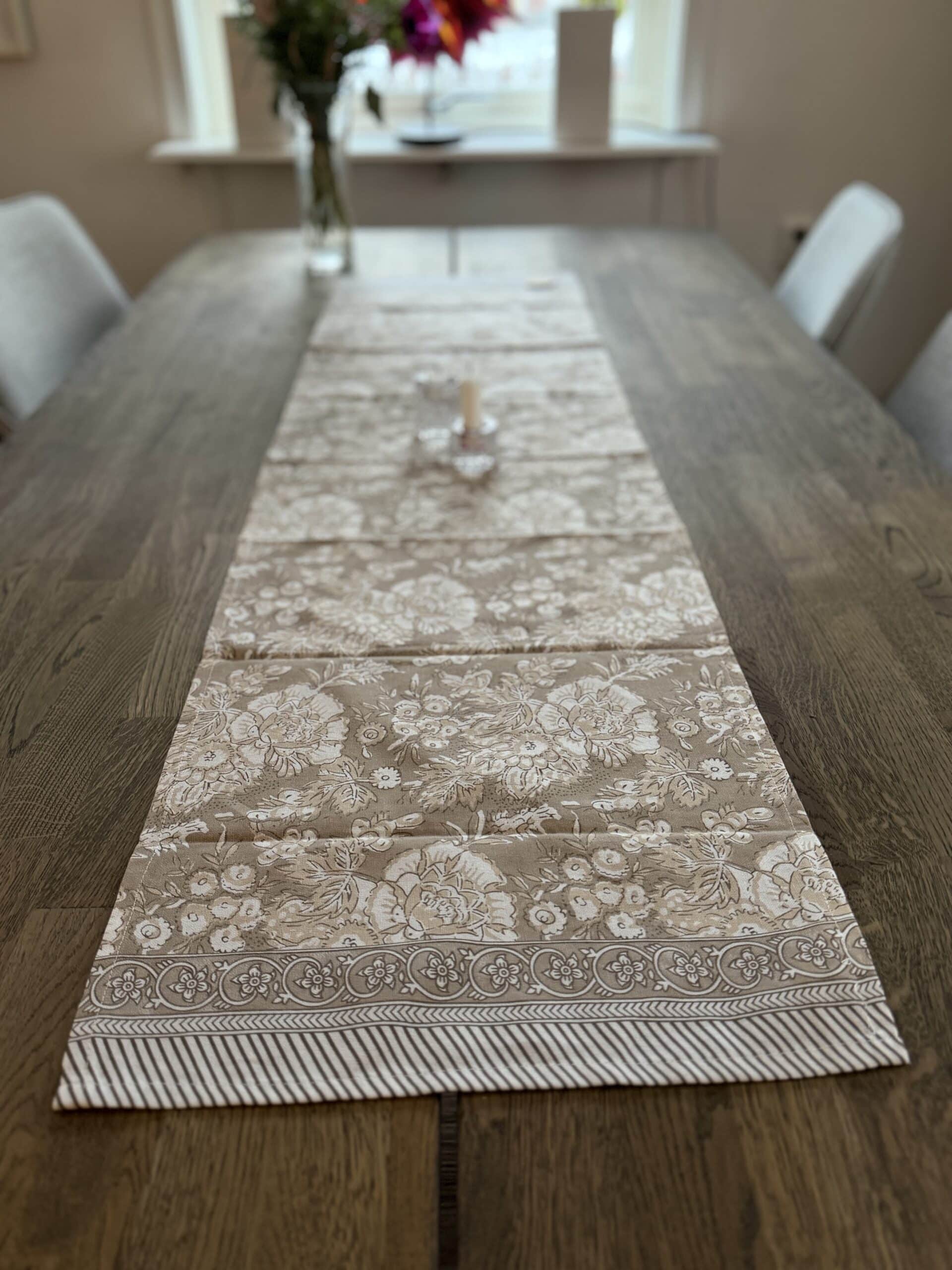 Löpare Sonia lin. Stilfull bordslöpare tillverkad i 100% bomull med ett magnifikt och detaljerat mönster som ger dukningen ett elegant och uttrycksfullt utseende. Löparen har en vacker bård på kortsidorna som ramar in designen och bidrar till ett harmoniskt och välbalanserat uttryck. Fin att både ha längs med bordet eller på tvären som bordstablett för två.