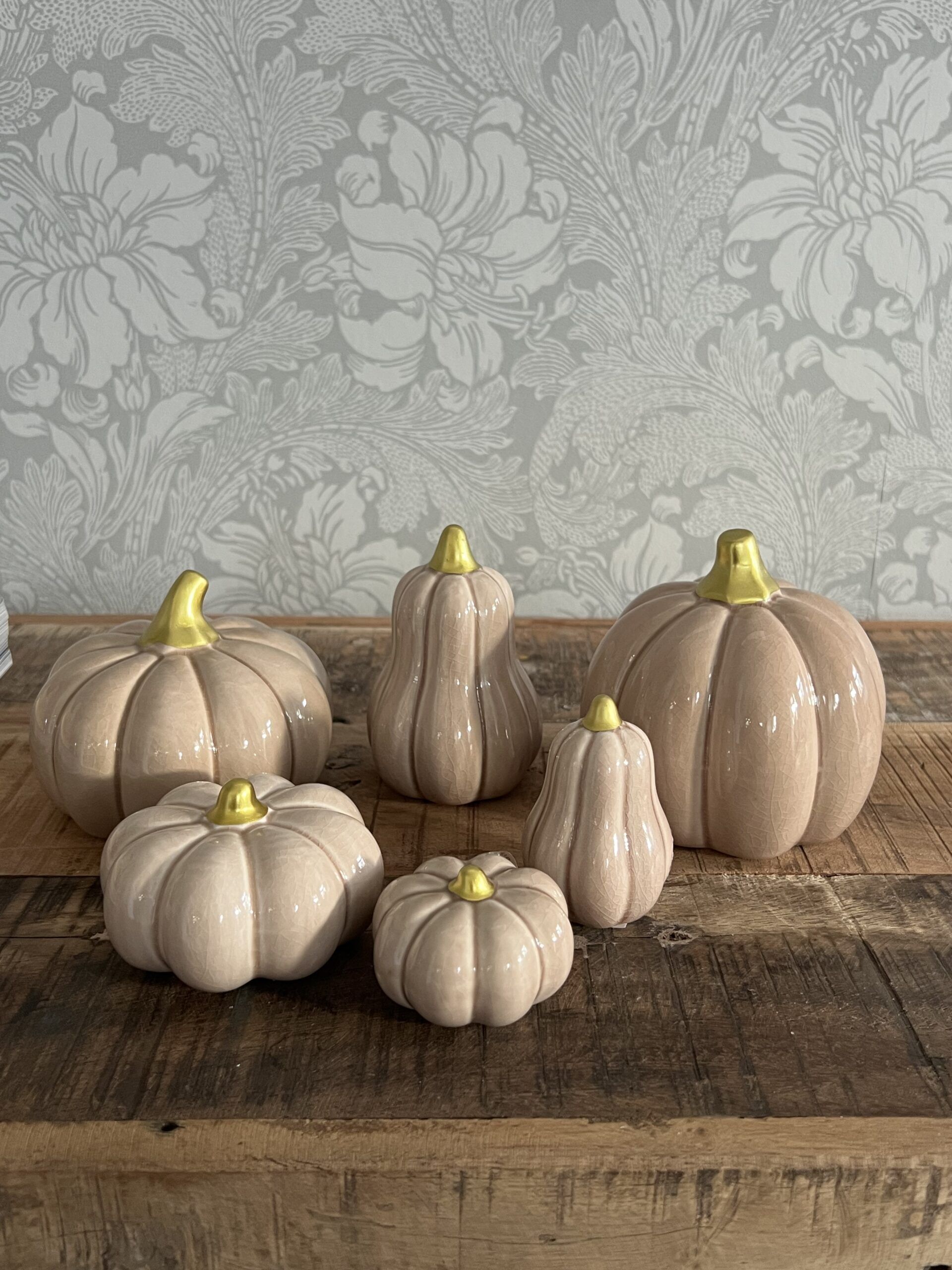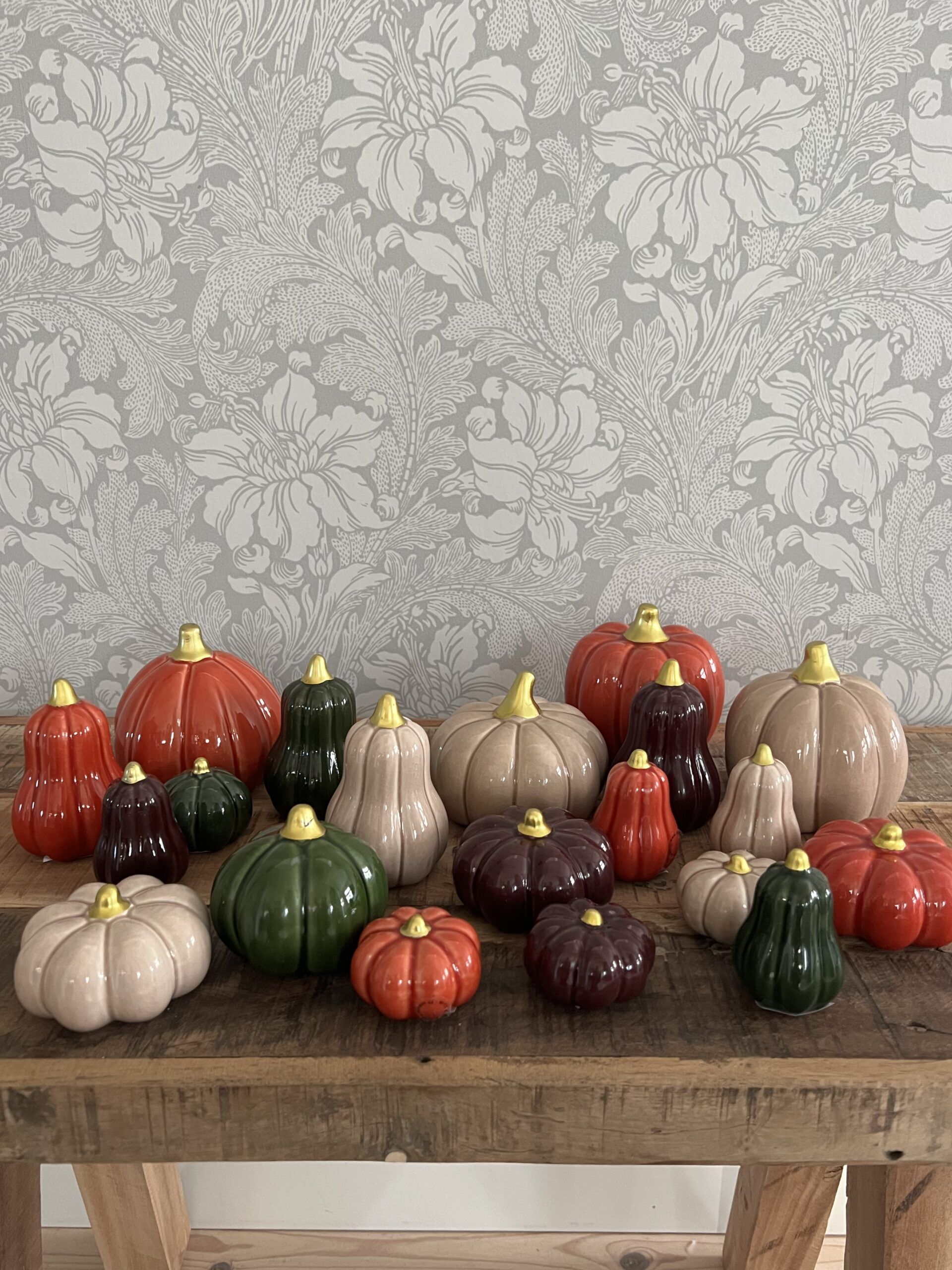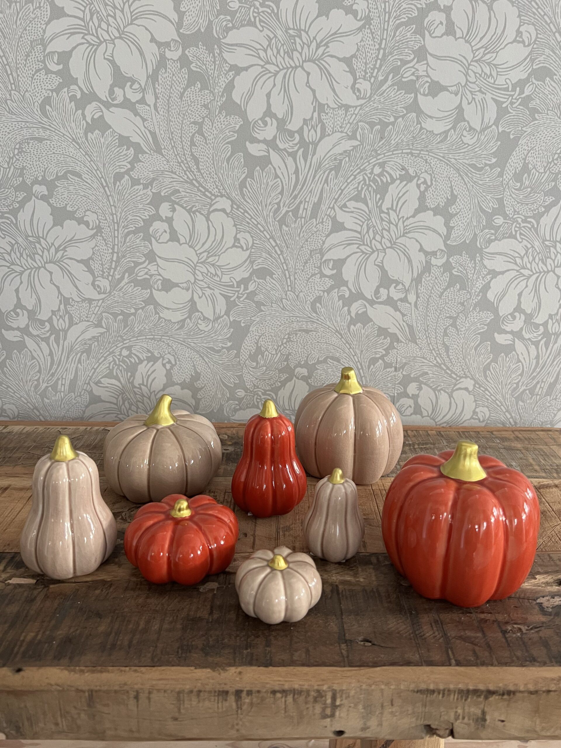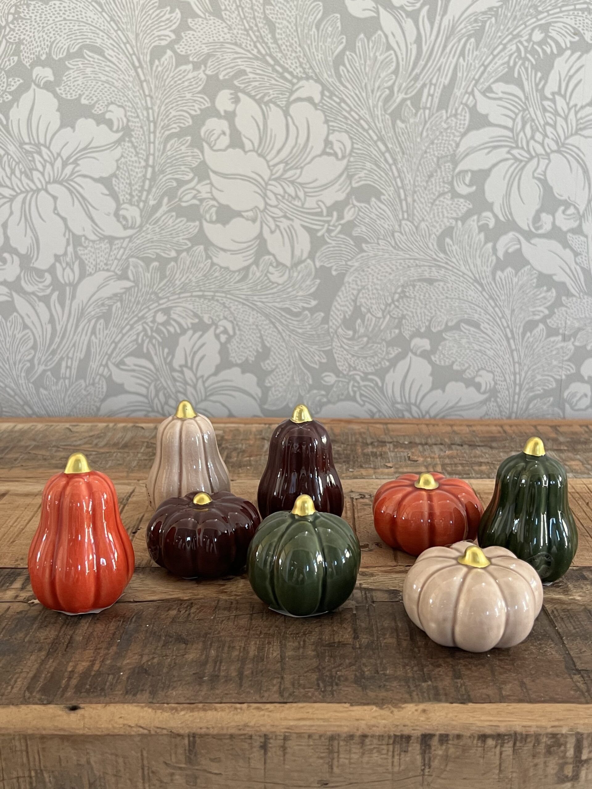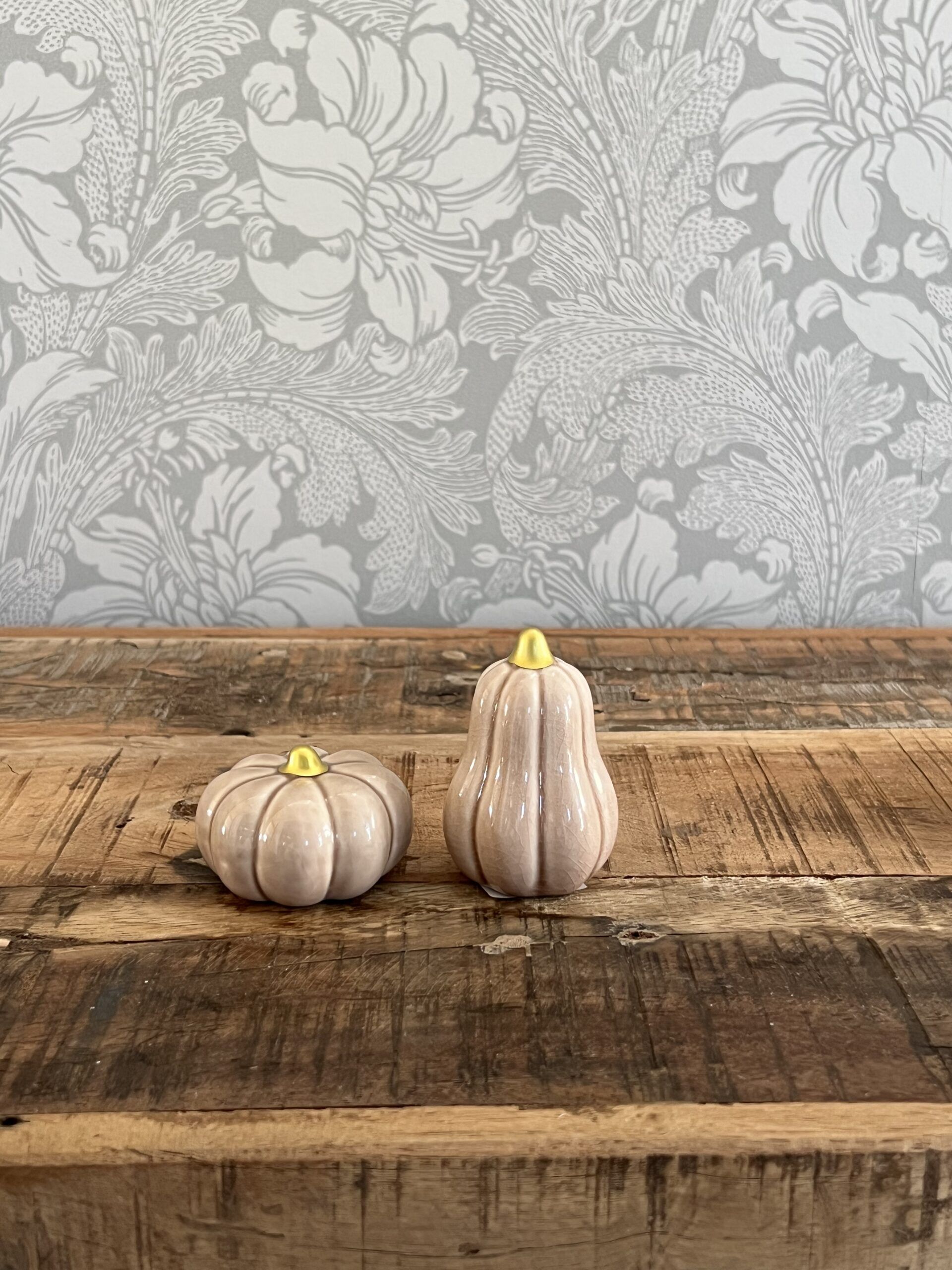 Pumpa Fenja beige liten 2-pack. Söta små pumpor i keramik för dekoration. Finns i flera olika färger och storlekar. Mixa och matcha dina favoriter. Säljs i par om 2 st, i rund och avlång modell.