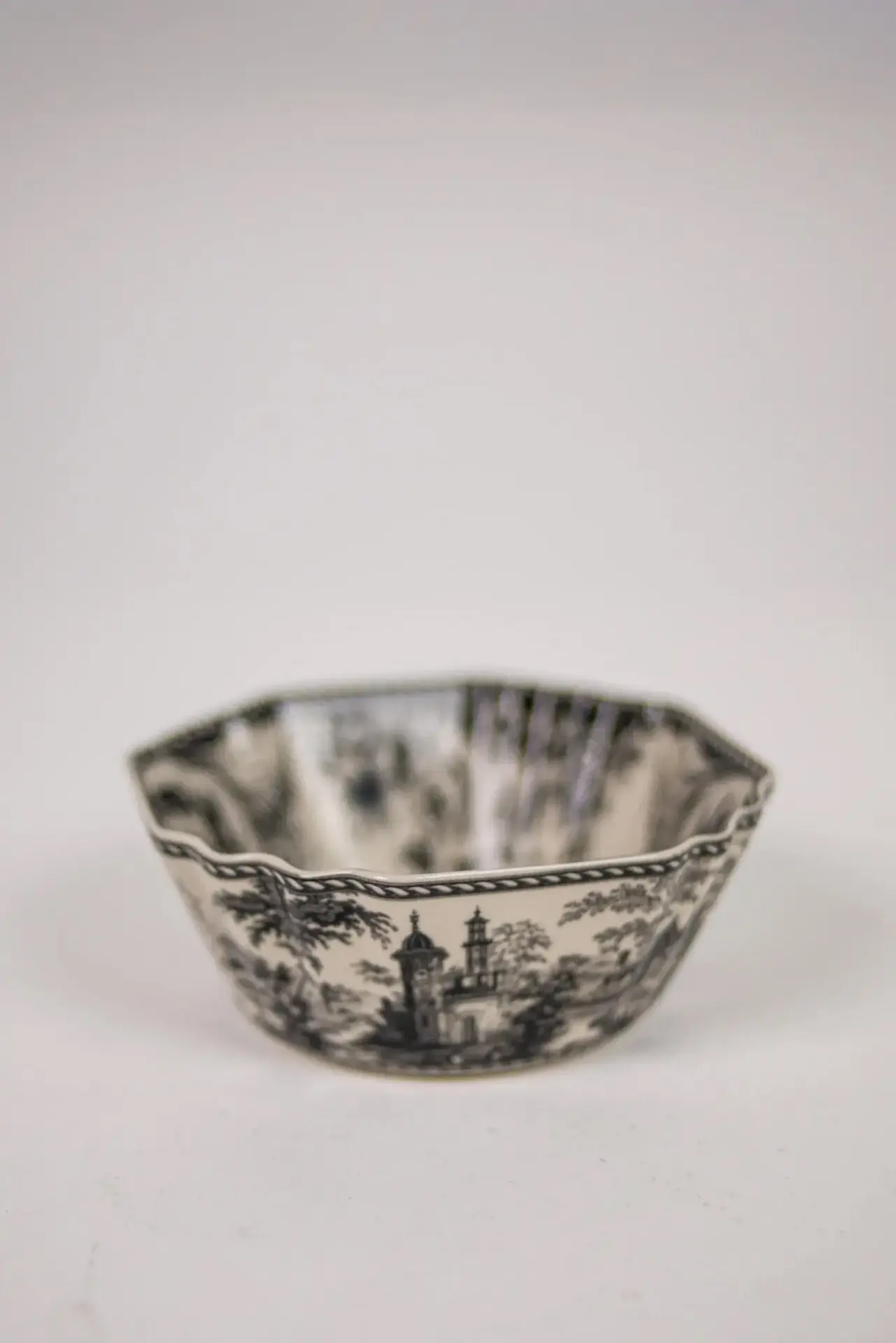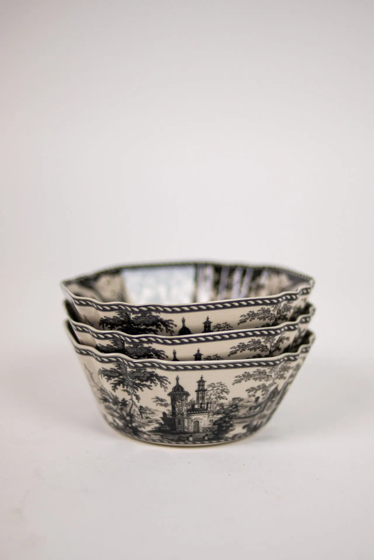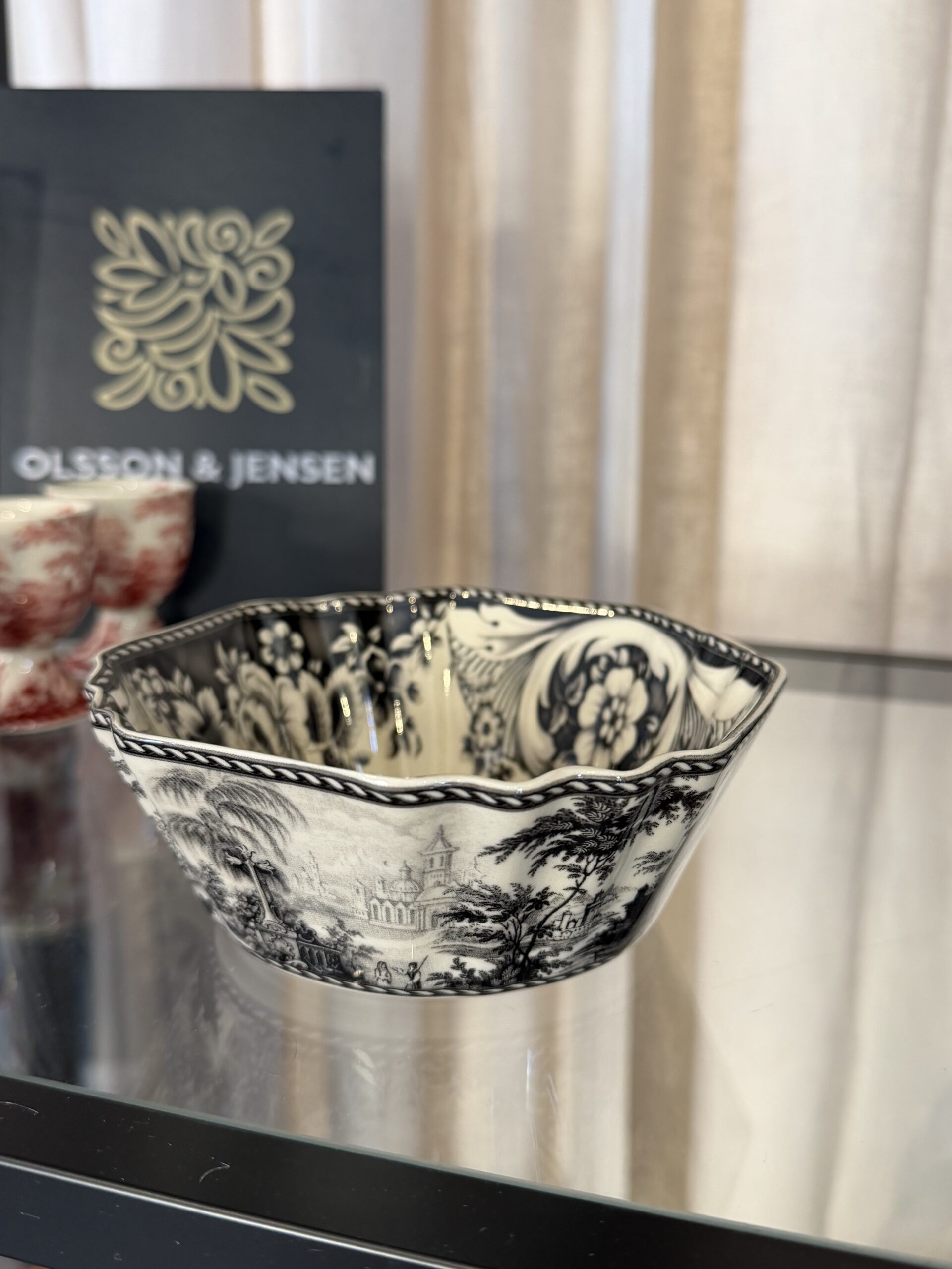 Skål Estelle svart. Vacker skål i vintage look inspirerad av 1700-talets Frankrike och Toile de Jouy. Den vackra 1700-talsdesignen kännetecknas av detaljerade landskap och romantiska motiv i en enda färg. Estelle förenar historia och elegans med en modern twist – och är den perfekta koppen för en stillsam eftermiddagsfika. Serie som finns i flera delar och i tre färger. Ett trendigt måste i varje hem.